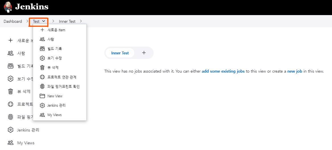 보통 실무에서 젠킨스를 사용하면 Item이 많아짐에 따라 view를 통해서 보기 용이하게 설정을 한다.