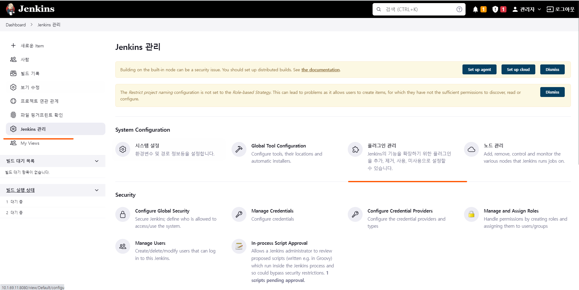Jenkins 관리 -> Configure Global Security 로 들어간다.