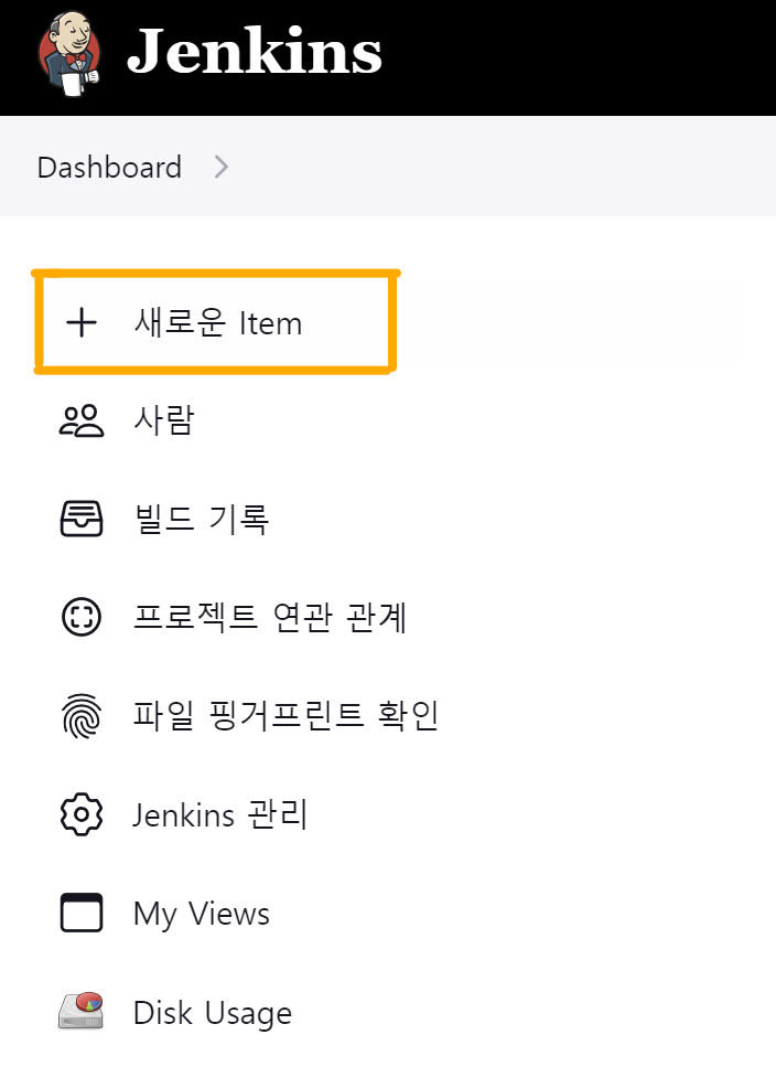 1. 먼저 좌측 메뉴에 새로운 Item을 누른다.