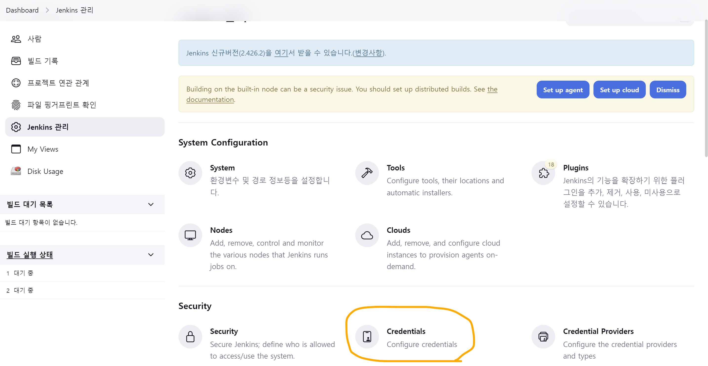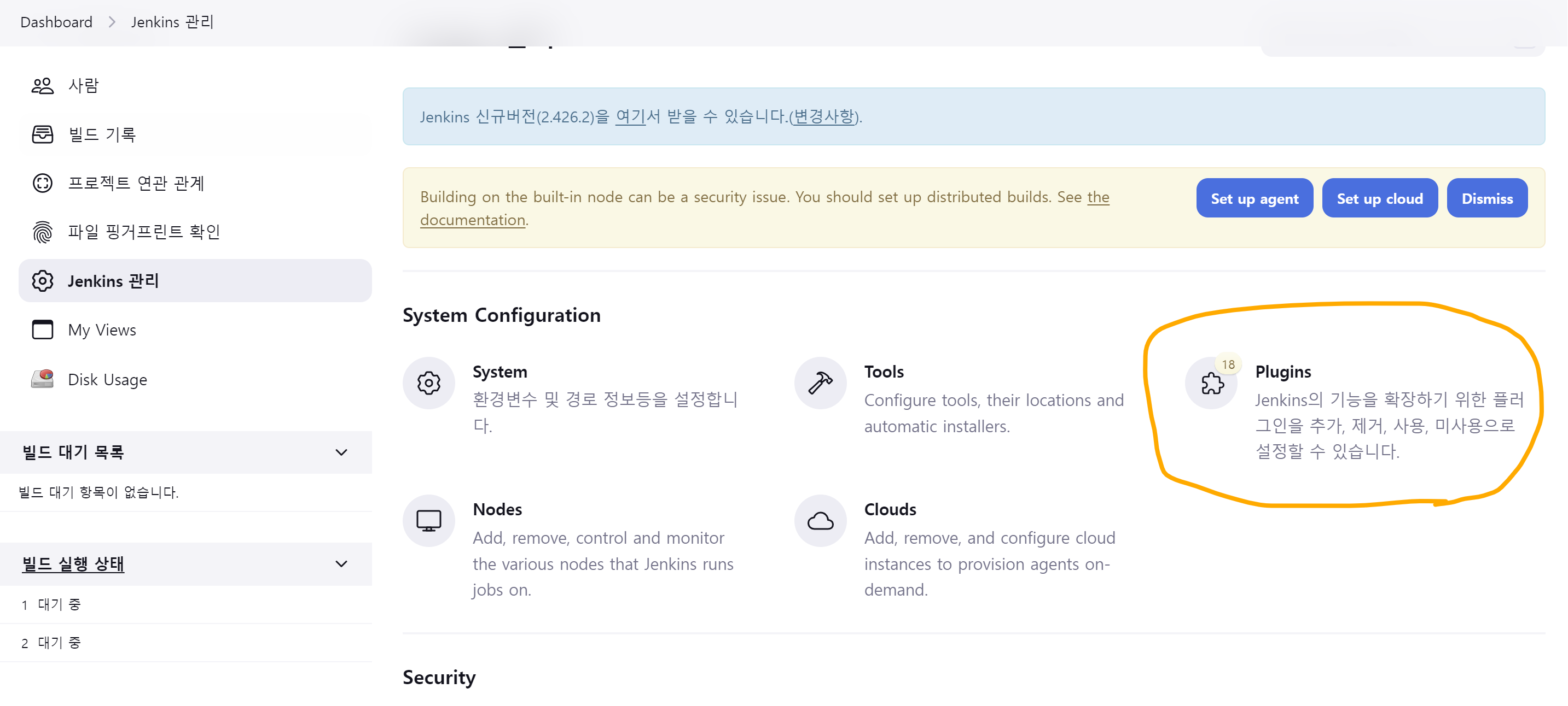 젠킨스 페이지로 다시 들어간다.