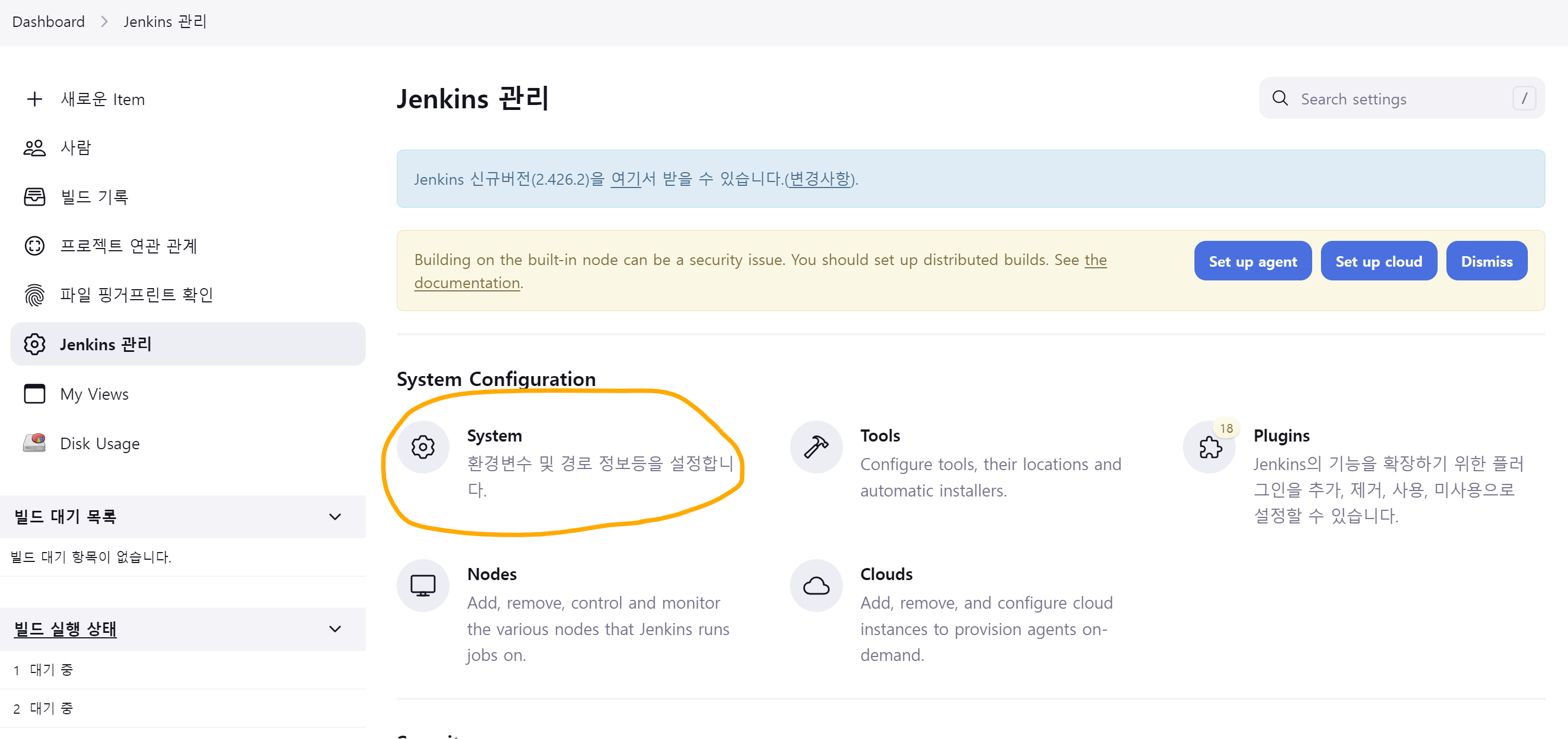 메인으로 가서 Jenkins 관리 -> System으로 들어간다.